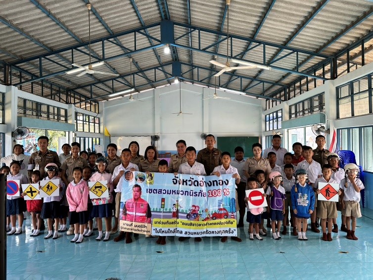 ร่วมโครงการ ครู 5 นาที จังหวัดอ่างทอง ขับขี่ปลอดภัย สวมหมวกนิรภัย 100% ร่วมรณรงค์ และประชาสัมพันธ์ สร้างจิตสำนึกในการสวมหมวกนิรภัย ให้แก่คณะครู และนักเรียน เพื่อลดการเกิดอุบัติ
