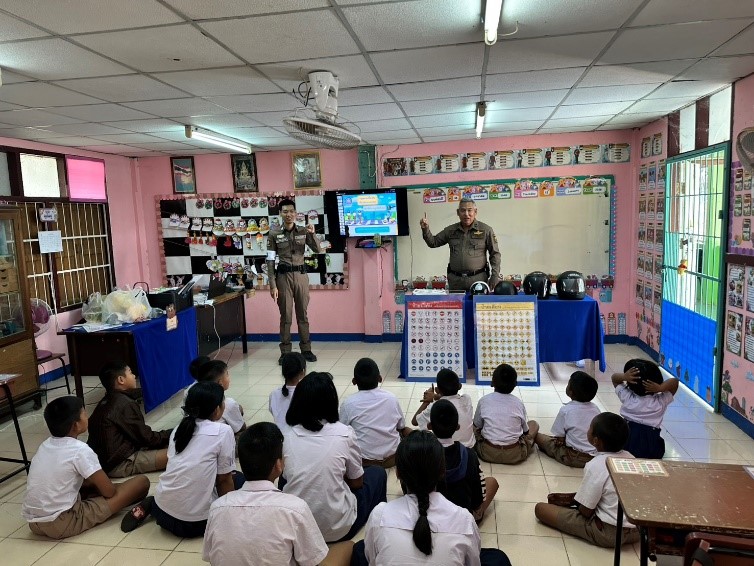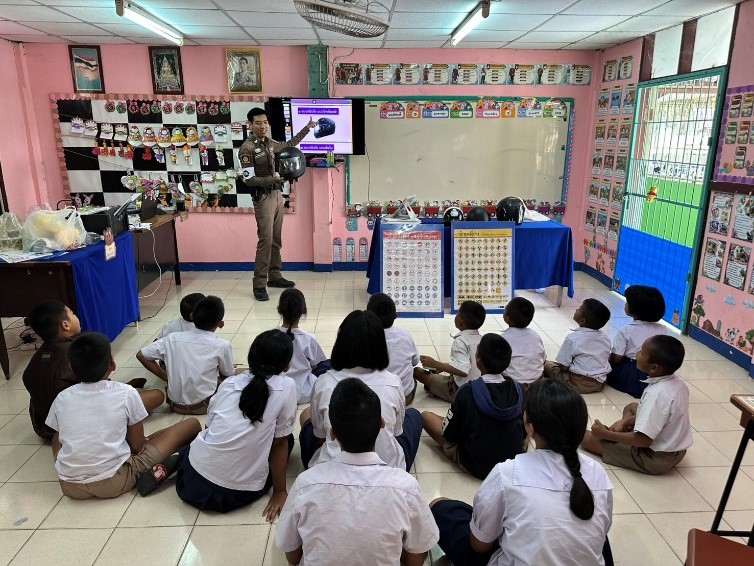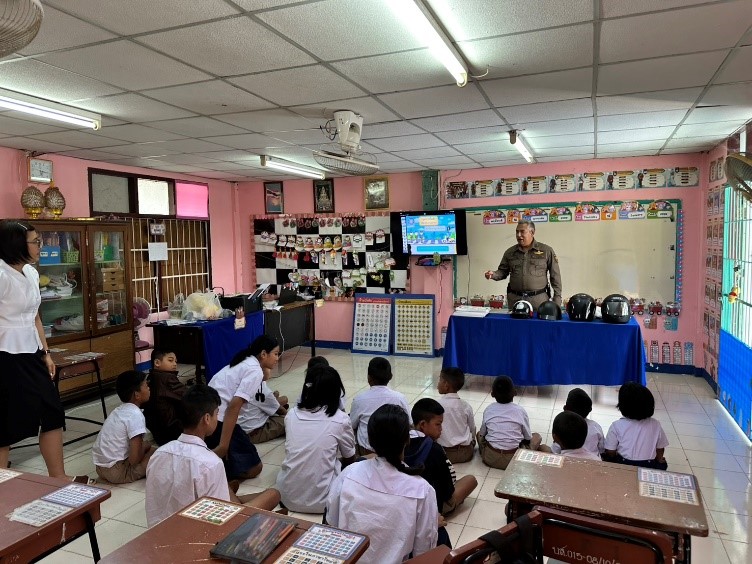 ร่วมโครงการ ครู 5 นาที จังหวัดอ่างทอง ขับขี่ปลอดภัย สวมหมวกนิรภัย 100% ร่วมรณรงค์ และประชาสัมพันธ์ สร้างจิตสำนึกในการสวมหมวกนิรภัย ให้แก่คณะครู และนักเรียน เพื่อลดการเกิดอุบัติ