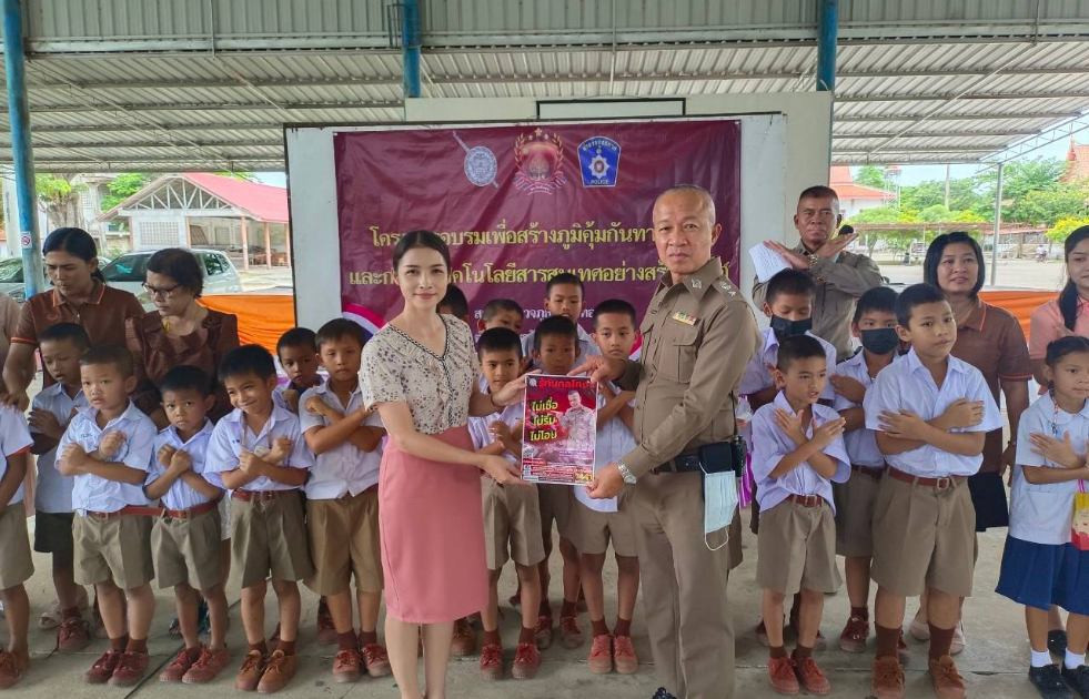 ผลการปฎิบัติงานสายงานสอบสวน 2 เม.ย.69 2 เมษายน 2569 โดย admin / ผลการปฎิบัติงานสอบสวน สภ.โพธิ์ทอง ภ.จว.อ่างทองเรียน ผู้บังคับบัญชาวันที่ 2 เมษายน 2569 เวลา 09.00 น. ภายใต้การอำนวยการของ– พ.ต.ท.ภูริฑา แก่นสิงห์ รอง ผกก.(สอบสวน) สภ.โพธิ์ทอง มอบหมายให้ เจ้าหน้าที่งานสอบสวน สภ.โพธิ์ทอง ได้ให้ความรู้ และเสริมสร้างภูมิคุ้มกันทางออนไลน์ ในหัวข้อ ไม่เชื่อ ไม่รีบ ไม่โอน ณ โรงเรียนวัดทางพระ ต.ทางพระ อ.โพธิ์ทอง จ.อ่างทอง