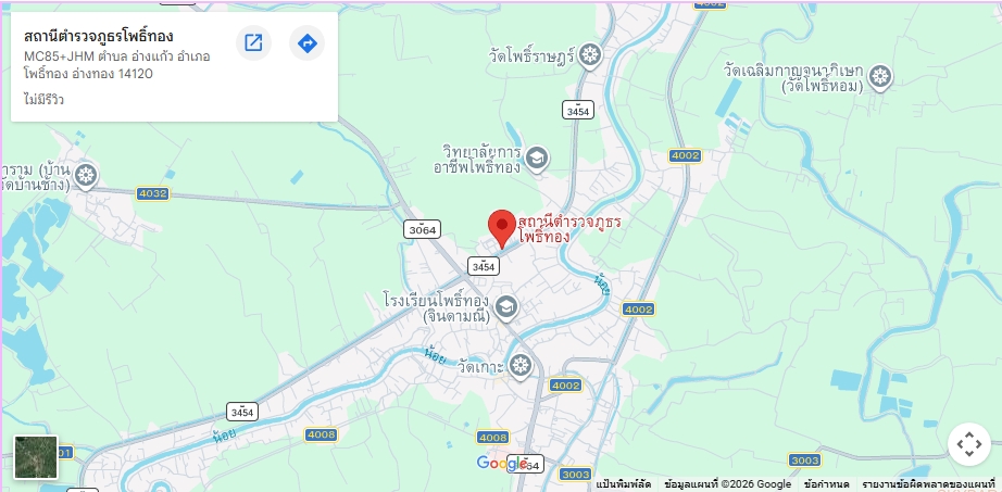 – สถานีตำรวจภูธรโพธิ์ทอง– ที่อยู่ 60 หมู่ 1 ต.บางเจ้าฉ่า อ.โพธิ์ทอง จว.อ่างทอง – โทร. 035-949-889 , 082-849-0512– saraban_phothong@police.go.th